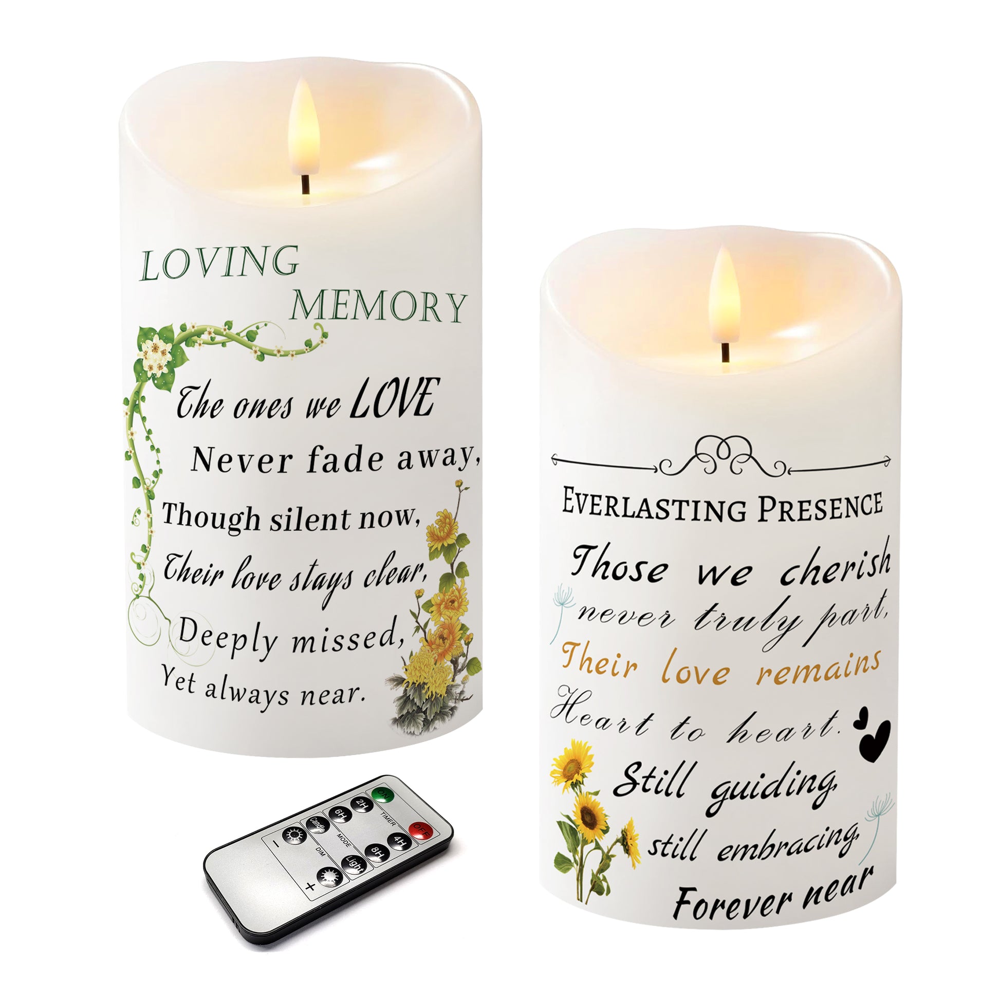 Electronic Flameless Candle - Realistic Wax Memorial Candle with Remote Control, Timer, and Condolence Message, Perfect for Remembering Loved Ones (2 Pack, 4" W × 7" H (Flower)