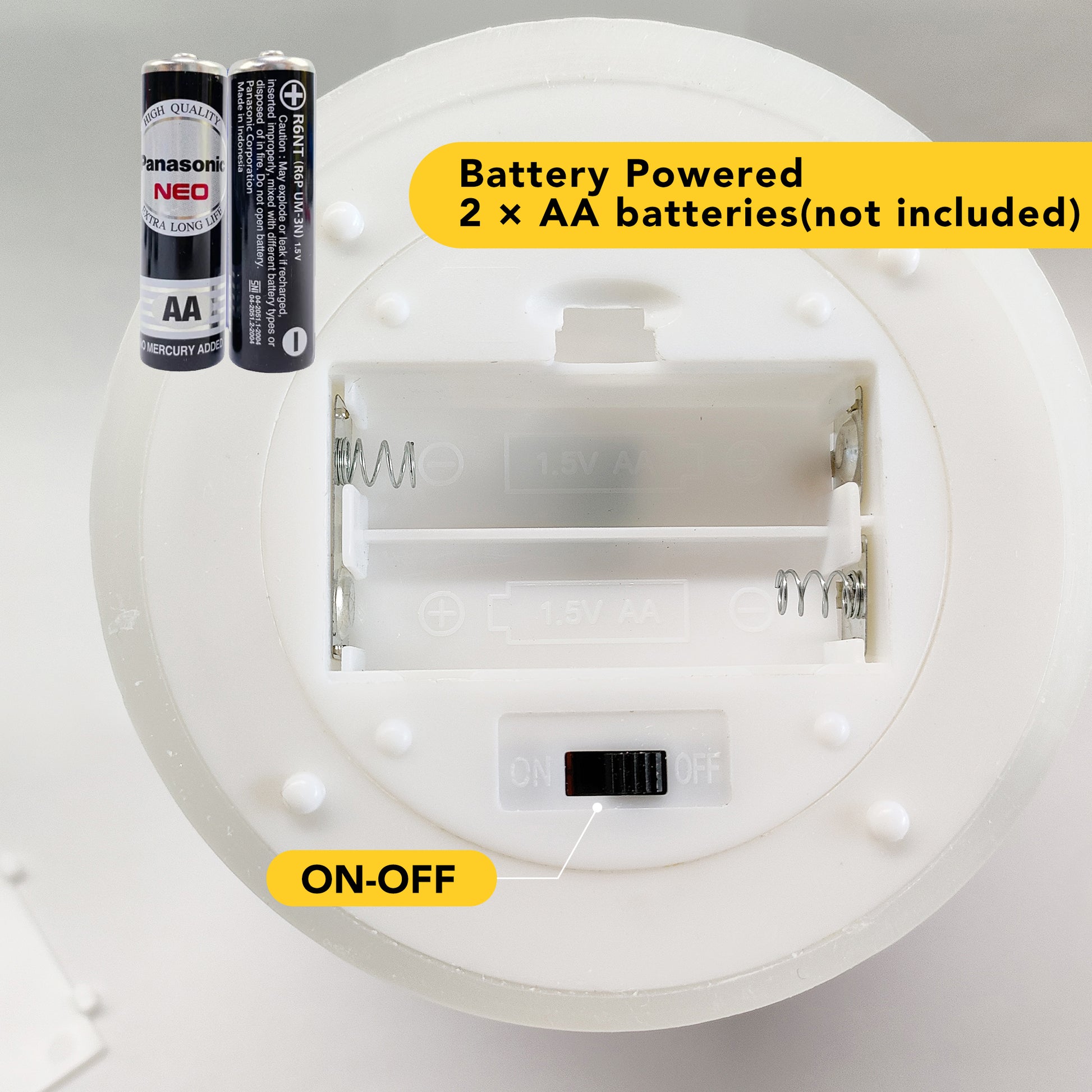- √Safe & Easy to Use Battery-powered (requires 2 × AA batteries, not included) with no open flames, ensuring safety. Simply insert batteries, press the power button, and enjoy a warm, flickering glow.